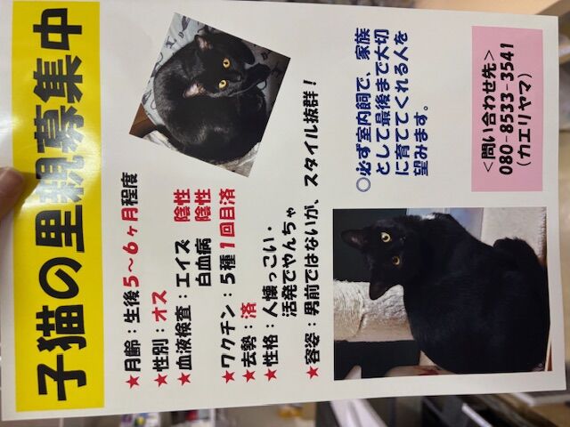 子猫の里親募集をさせていただきます。