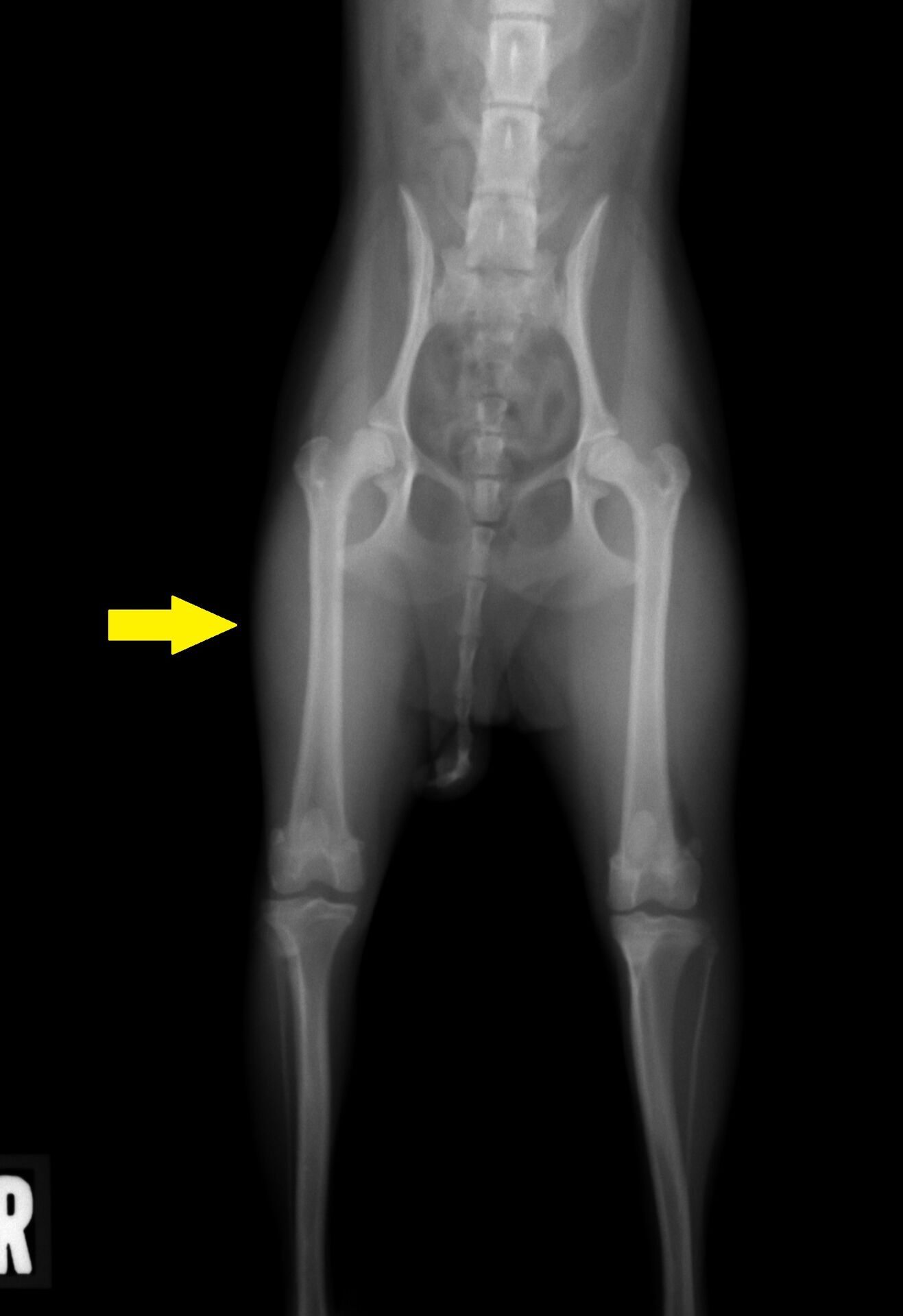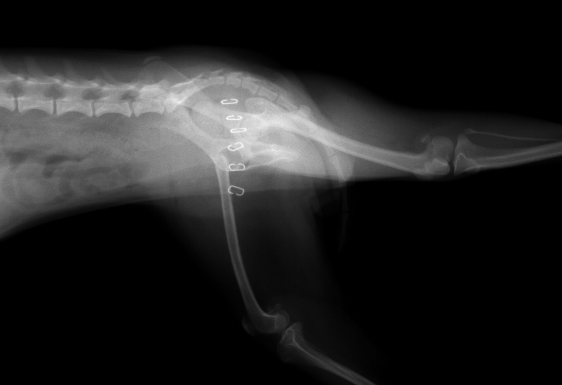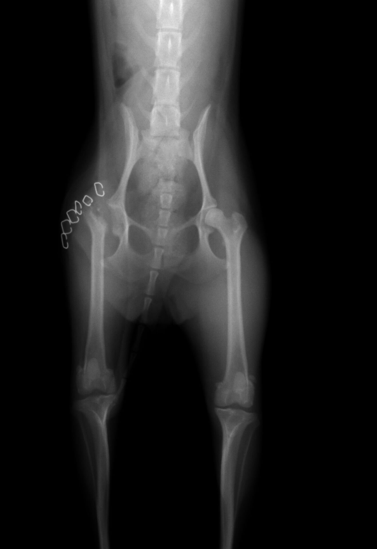 かなり痛がったので、股関節に痛みがあると判断しレントゲンを撮りました。