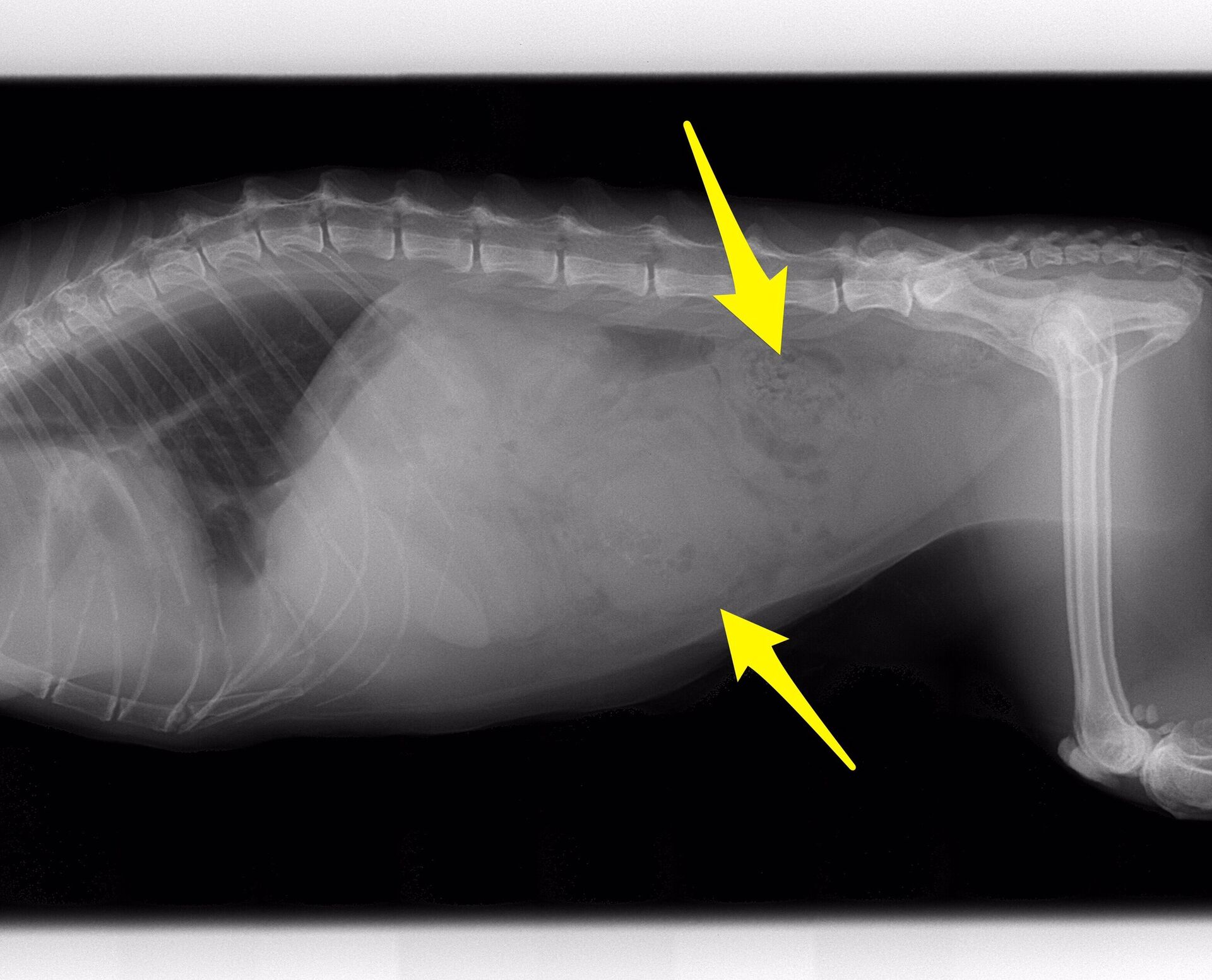 問題は腹部の腫瘤で、エコーとレントゲン写真を下に示します。