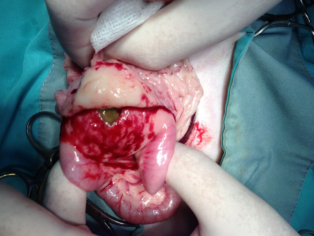 もし、癒着が起こっていなかったら腸壁に穴が開いて数日のうちに亡くなっていたでしょう。